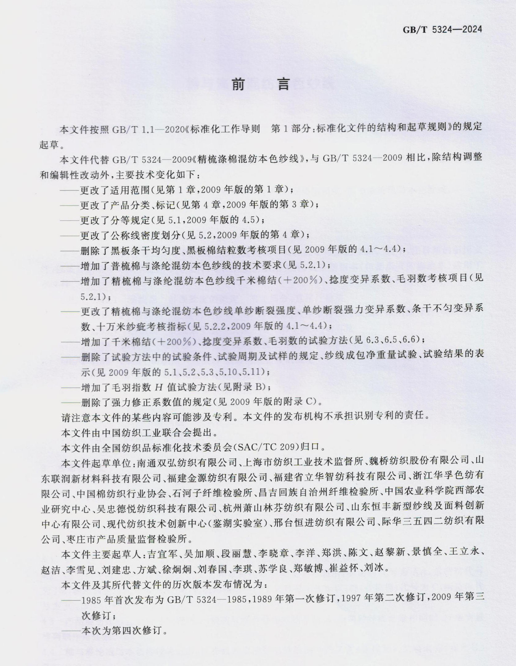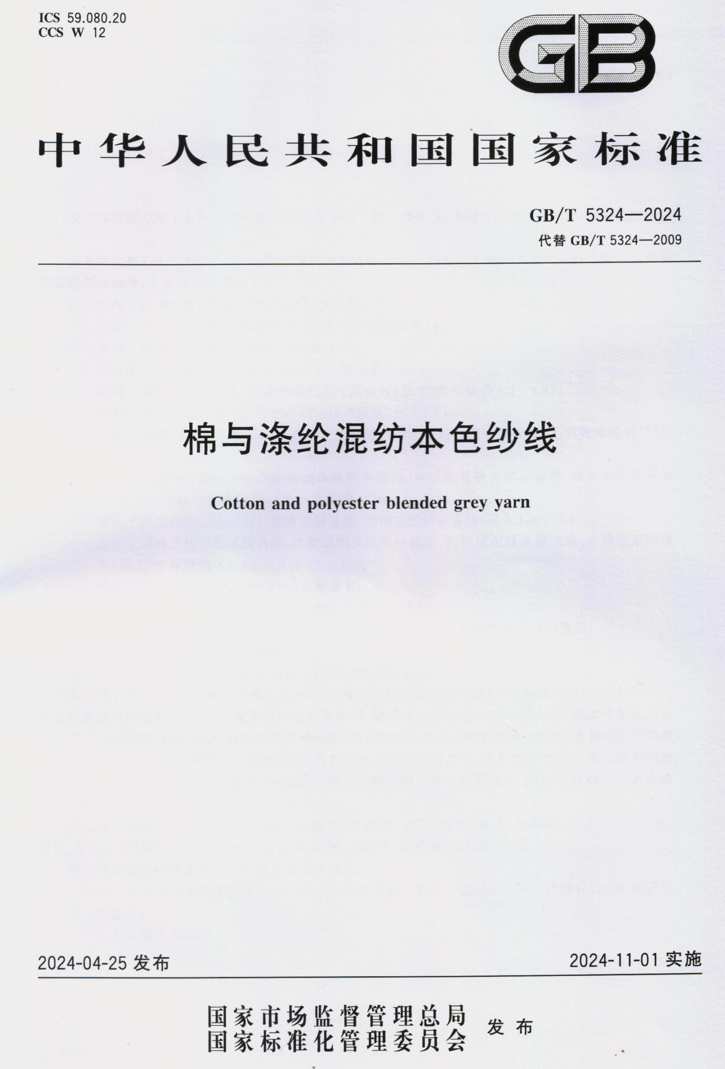 Nacionalni standardni GB/T 5324-2024 "Pamuk i poliesterska prirodna pređa" izrađen od dvostruke velike tvrtke službeno će se provesti 1. studenog 2024.