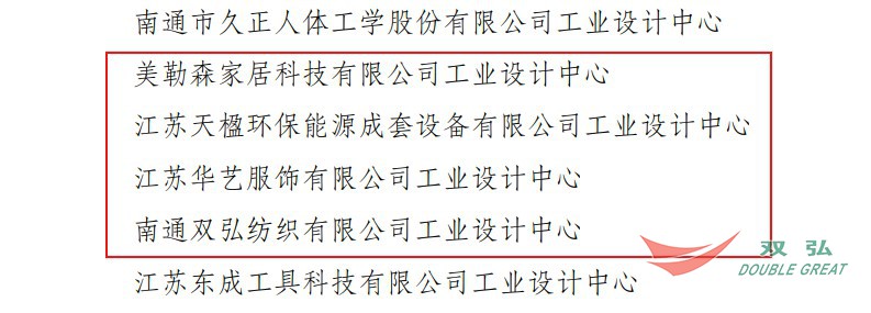 Nedavno je saznao iz provincijskog odjela za industriju i informacijsku tehnologiju Jiangsu da je dodijeljen industrijski dizajnerski centar Nantong Double Great Textile Co.,,, Ltd. Naslov Centra za industrijski dizajn Jiangsua 2022. godine .