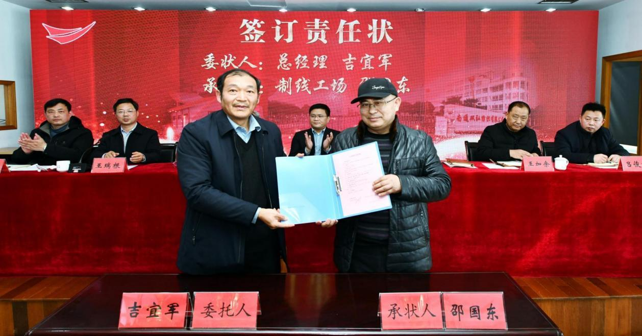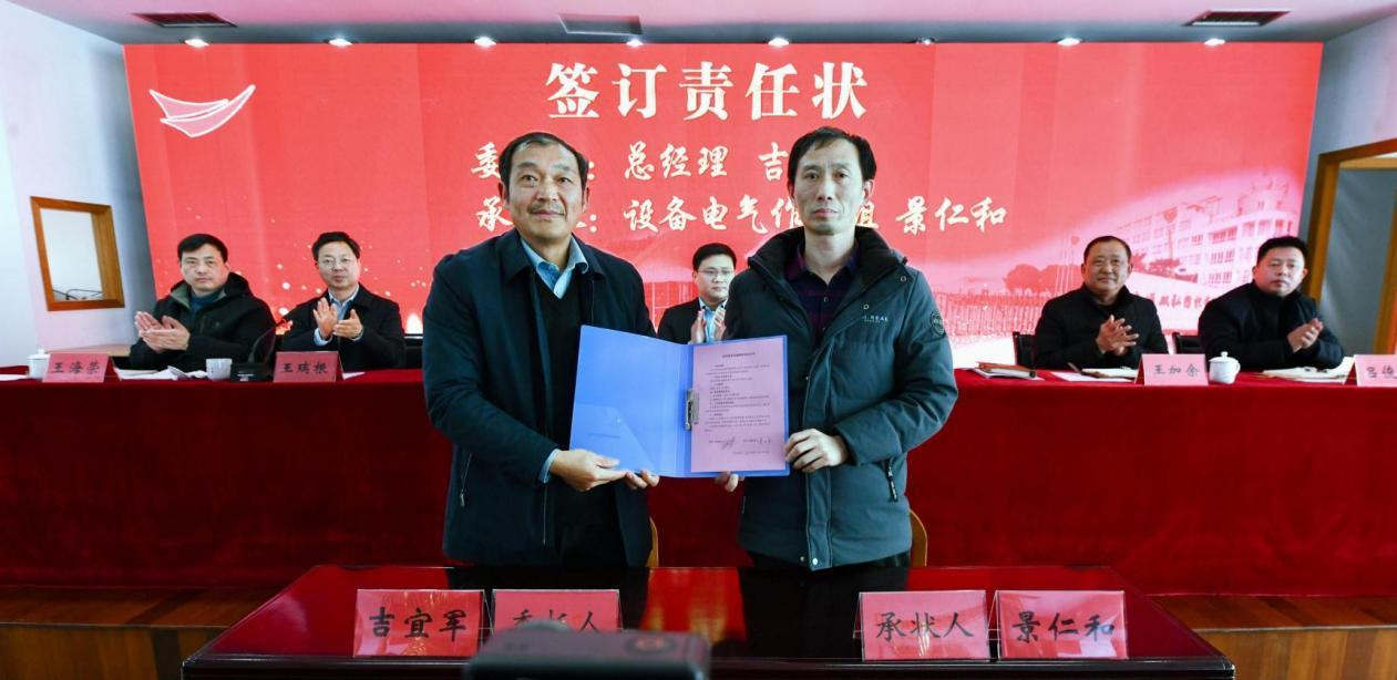 S jednim ciljem i jednim umom, nastojimo provesti strategije reformi. Naglašavamo političko vodstvo i izgradimo tim zaposlenika. Naglašavamo predmet odgovornosti i potiče vitalnost. Naglašavamo jednu tvornicu s više sustava i potičemo spajanja i akvizicije. Naglašavamo učinkovitost rada, centralizirano upravljanje od strane tvrtke i hijerarhijsku odgovornost od strane odjela. Jedinstvo je snaga, a borba stvara budućnost. Drugi Ji Yijun nada se da će svi dvostruki veliki ljudi biti sigurni, nadaju se, pionirski, g i poduzetni s duhom zmije koja može prijeći tisuće kilometara, preuzeti inicijativu u poteškoćama, popeti se na prepreke u nevoljama, te naporno raditi zajedno na izgradnji dugotrajnog dvostrukog velikog velikog i stvaranja bolje budućnosti. Šef marketinškog odjela potpisao je pismo o marketinškoj ciljanoj odgovornosti s predsjednikom Yang Yangom, a šef radionice o proizvodnoj radionici i timu za održavanje električne energije za opremu potpisali su pismo o ciljanoj odgovornosti radionice i pismo odgovornosti za opremu s generalnim direktorom Ji Yiju, n respektivno.